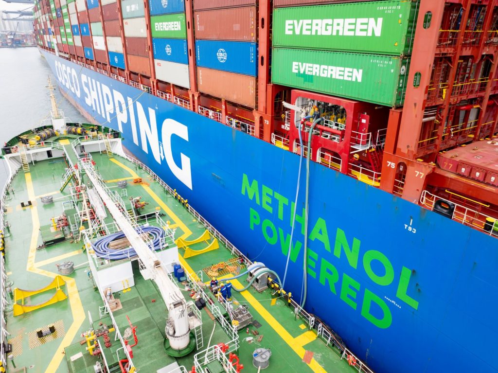 The operation featured the COSCO SHIPPING GEMINI, a methanol dual-fuel container vessel with a carrying capacity exceeding 20,000 TEU. The vessel received 200 tonnes of green methanol through a ship-to-ship transfer from a specialised bunker vessel DAQING 268 operated by Chimbusco Pan Nation (CPN). The process was completed within 5 hours.