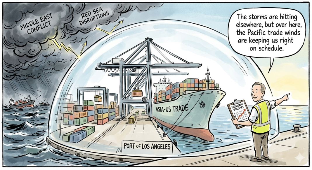 He added that manufacturing flows serving the US, Europe and Latin America continue to move. Port data showed imports rose five in February compared with a year earlier, as retailers and manufacturers shipped goods ahead of Chinese New Year.